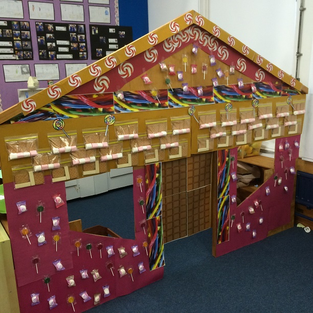 We have started to learn about Fairy Tales in Parekereke. One morning when the students arrived they found pebbles dropped down the corridor. They carefully followed the pebbles and discovered a house covered in sweets!!! I wonder who live here?